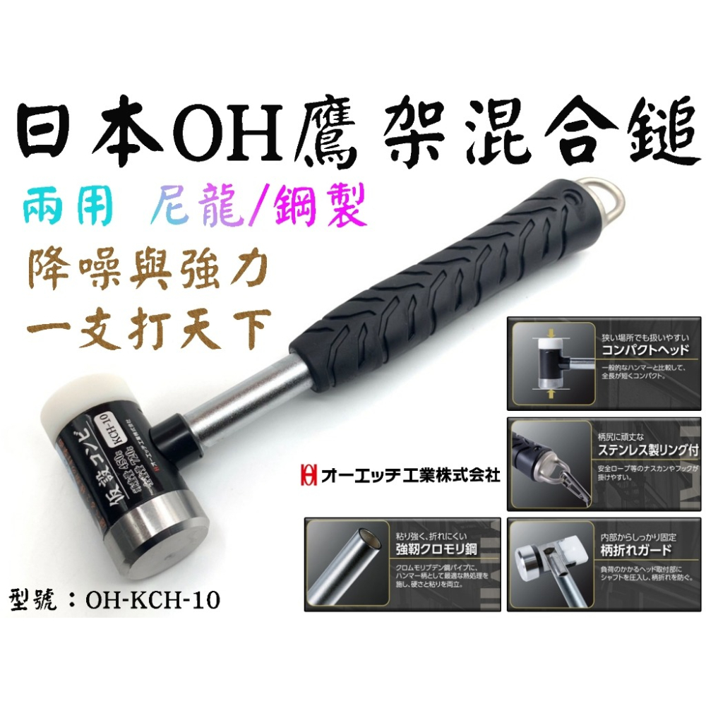 【五金大王】日本 OH鐵鎚 鷹架混合鎚 香檳鎚 橡膠鎚 組合鎚 家具組合 鷹架鎚 KCH-10