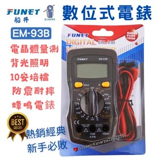 【五金大王】船井 FUNET 數字三用電錶 EM-93B 電晶體量測 背光照明 10安培檔 數位三用電表 電子電錶