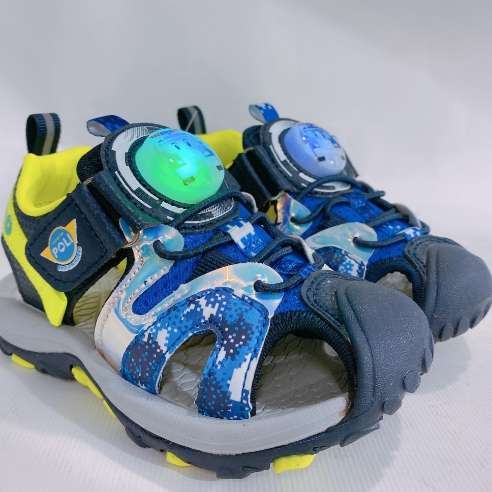 金英鞋坊~ 救援小隊變形警車POLI 羅伊 電燈護輕量涼鞋(台灣製造) 10226-藍綠 超低直購價299元(有燈)