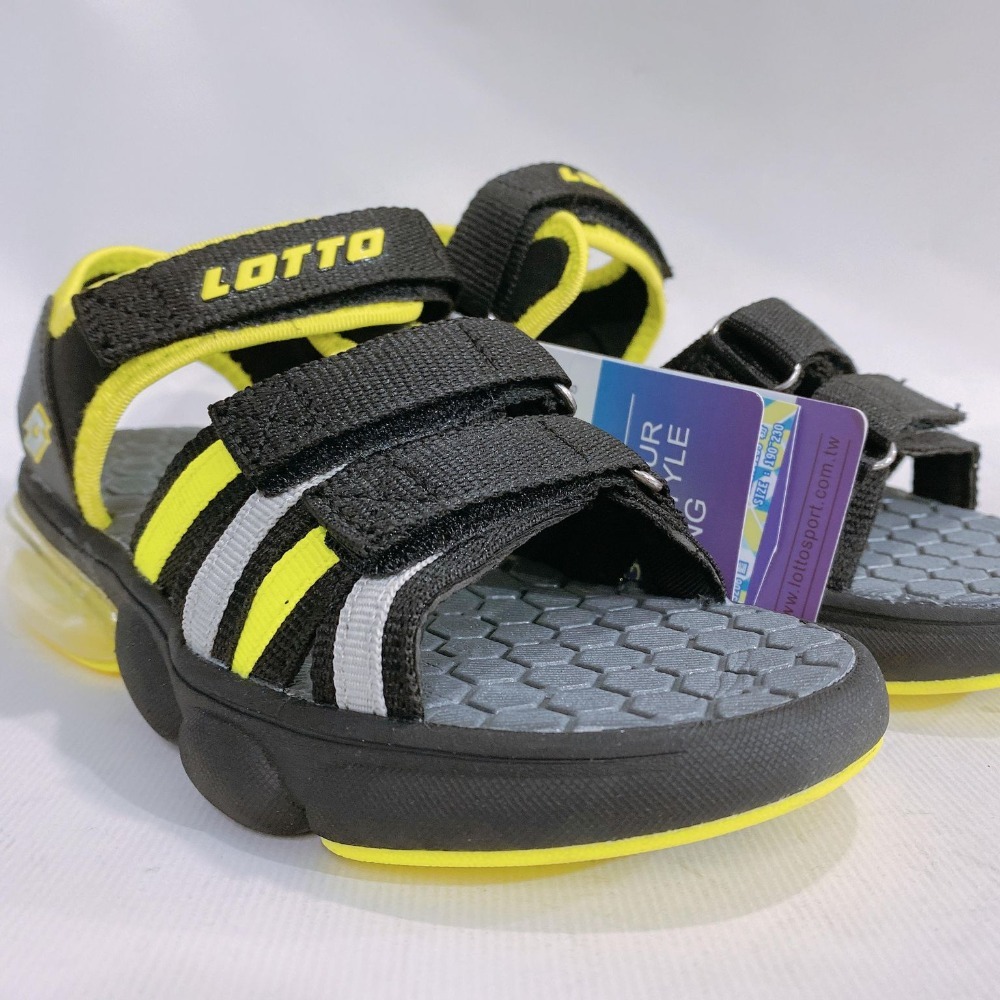 金英鞋坊~ LOTTO樂得-義大利第一品牌 童款輕量織帶氣墊涼鞋 3200-黑/螢光綠 超低直購價390元