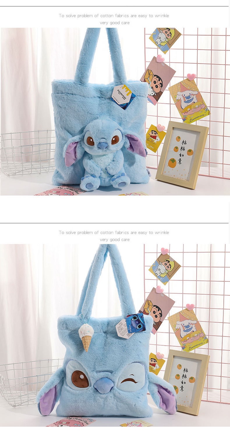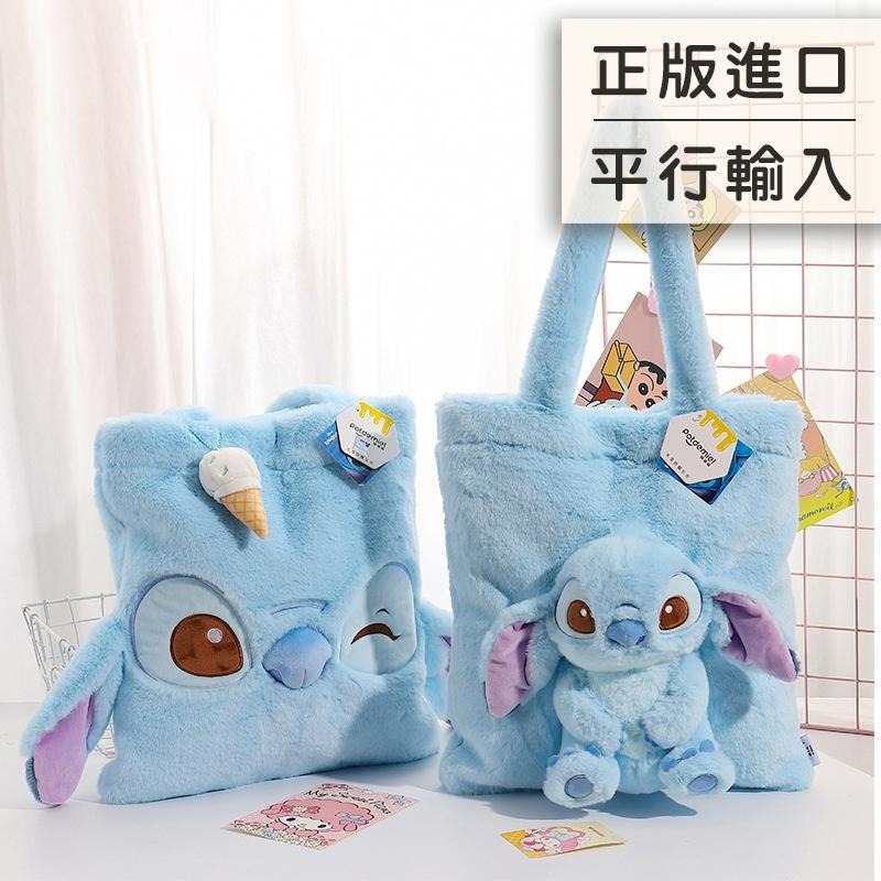 正版✨史迪奇絨毛側背包 迪士尼肩背袋 娃娃掛件 舒適毛絨手提袋 迪士尼手提袋 大容量側背包(平行輸入代購)