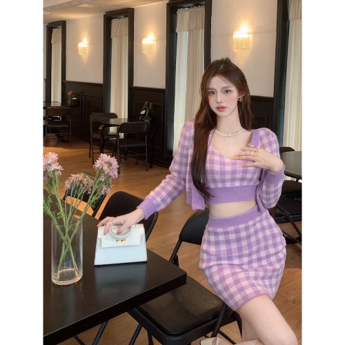材質:聚酯纖維 吊帶 胸圍:80-108 衣長:38 開衫 胸圍:94-120 袖長:51 衣長:43 裙子 腰圍:58-76 臀圍:84-100 裙長:45