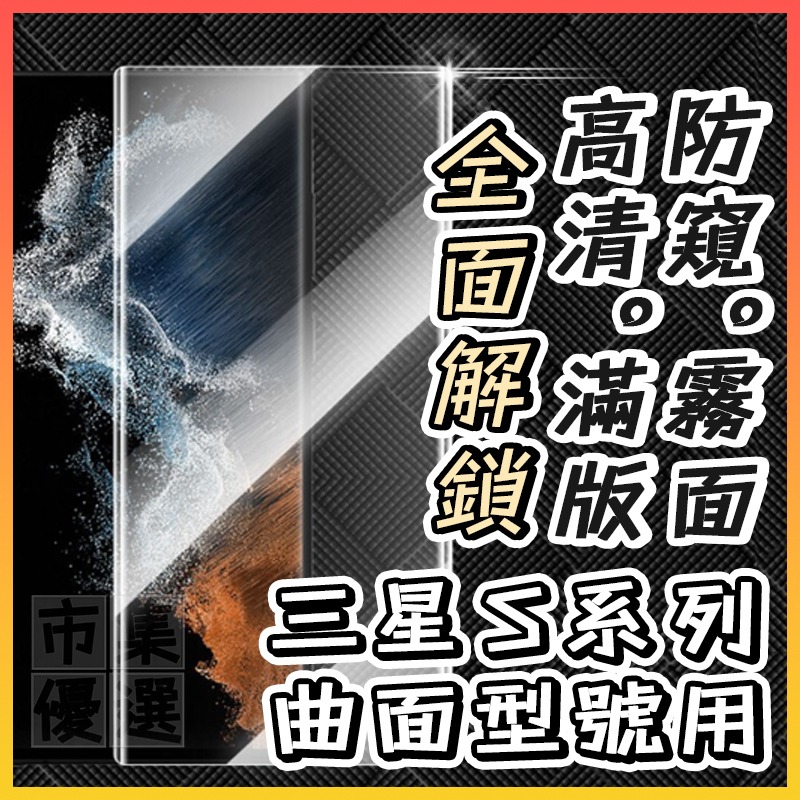 適用三星S系列可指紋解鎖UV點膠鋼化玻璃亮面/霧面磨砂/防窺螢幕保護貼鋼化膜▢S23 S22 S21 S20 Ultra