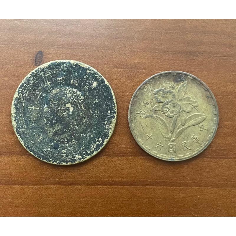 台灣五角伍角5角錢幣 1⃣️民國43年孫像臺灣地圖銅7.0g 2⃣️蘭花民國62年-鎳黃銅重 3.7g