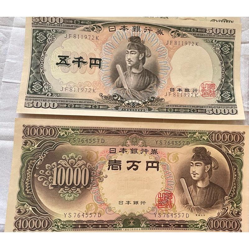 保證真鈔聖德太子日本1963年版日幣1⃣️10000元一萬元限量紙鈔2⃣️五千元3⃣️1000元伊藤博文全新無摺痕收藏品