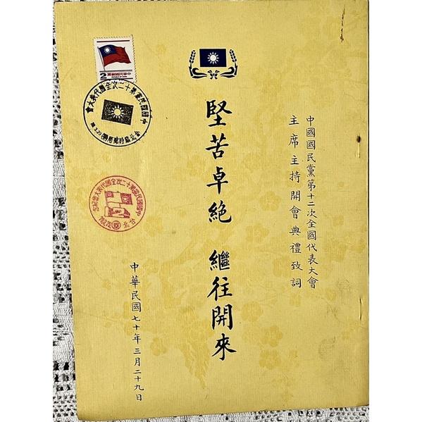 海內外絕版孤品歷史文獻中國國民黨第12次全國代表大會70年3月29號主席主持開會典禮致詞 中華民國國旗郵票及當日紀念戳