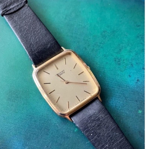日本製 錶 表 石英錶 東方ORIENT 方型[金色面]復古懷舊日本帶回需要換電池原裝表扣需要換表帶