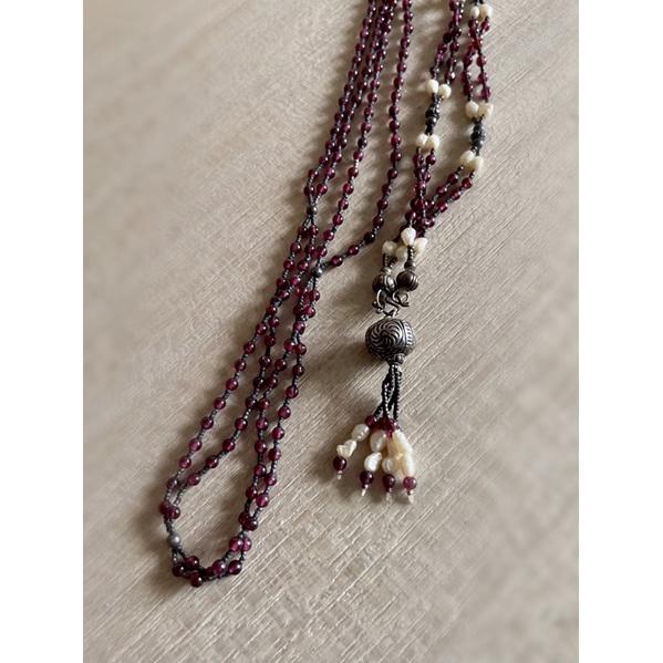 紫水晶項鍊水晶天然無核野生珍珠老銀 銀 吉普賽風民族風毛衣鏈長項鍊{Thistle Vintage}