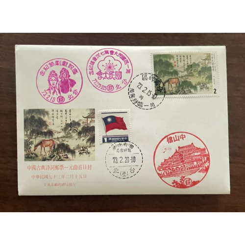 🔥 稀世珍藏!錯過不再有! 🔥 獨一無二的收藏逸品,歷史與文化的完美結合!這套特204中國古典詩詞郵票-元曲,不僅包含4枚全套郵票、護票卡與首日封,更帶有以下絕版珍稀郵戳,每一枚都是孤品,全球僅此一套! 商品亮點: 第一屆國民大會第七次會議紀念 台北73.2.20-3.25 珍貴郵戳 光這枚郵戳就是絕無僅有,歷史意義非凡! 中山樓 國民大會臨時郵局 73.2.20 台北葵二郵戳 獨一無二,全球僅此一枚! 慶祝戲劇節紀念 台北73.2.15 絕版郵戳 稀有度爆表,收藏界的傳奇! 台灣郵區 第一臨時郵局 73.2.15 葵 第四枚絕版孤品郵戳 無可複製✨ 商品內容: 特204中國古典詩詞郵票-元曲 4枚全套 護票卡,保存完好,品質頂級 首日封,歷史感滿載 四枚絕版郵戳,每一枚都是獨一無二的歷史見證 為何值得收藏? 絕版孤品:這些郵戳組合全球僅此,無法複製! 歷史價值:記錄台灣重要歷史時刻,文化與郵政的完美交融 收藏稀有度:資深郵票收藏家夢寐以求的珍寶 #郵票收藏 #絕版郵票 #元曲郵票 #歷史珍品 #台灣郵戳