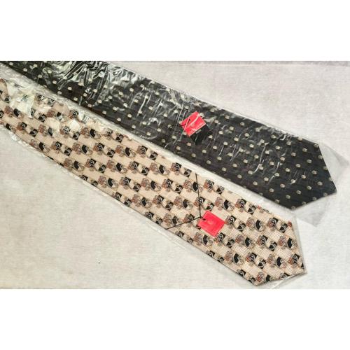 推薦兩條全新、玻璃紙與吊牌未拆的純絲質領帶 最寬處均為10公分 1️⃣皮爾卡登Pierre Cardin Paris 經典黑底、金色點紋領帶 低調內斂的黑色底,配上細緻的點狀圖案,無論是正式會議還是重要約會,都能展現你的穩重與專業。來自巴黎的設計,讓你輕鬆駕馭各種場合。 2️⃣Roberta di Camerino Italy 義大利藝術風格領帶 獨特的幾何與花紋設計,融合義大利經典工藝與時尚美學。每一個細節都透露著藝術家的靈魂,讓你在人群中脫穎而出,展現獨一無二的品味。 限量販售,錯過不再。用細節,創造屬於你的故事!