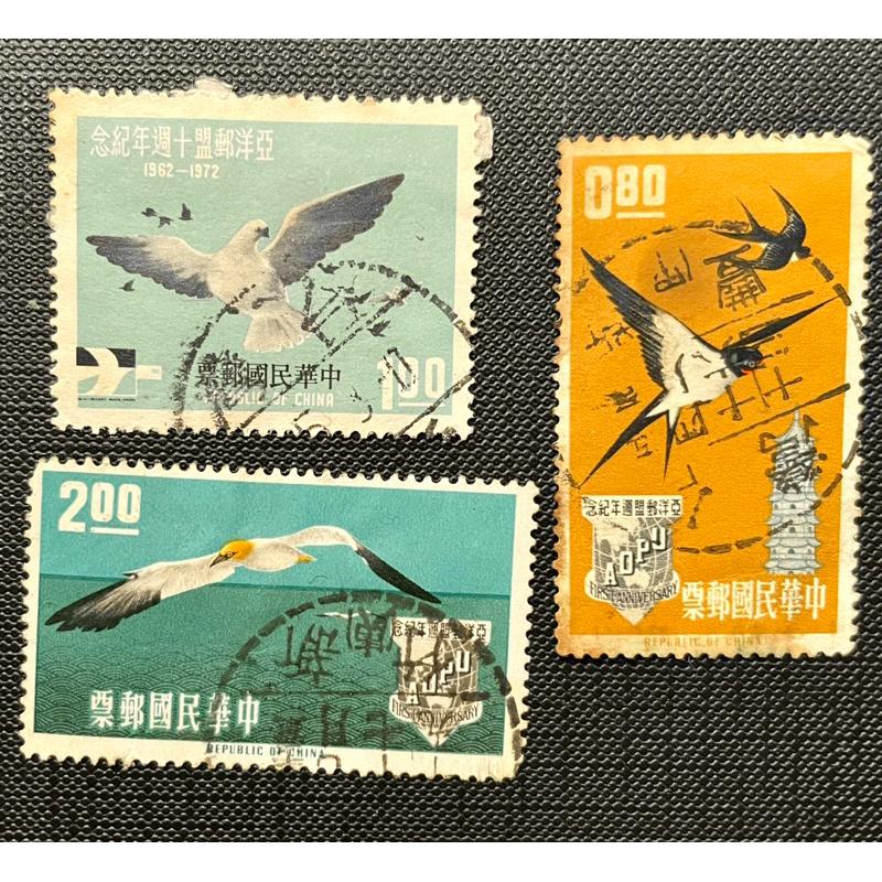1️⃣紀085亞洋郵盟週年紀念郵票民國52年發行台灣新豐戳新竹半戳2️⃣ 特055新年郵票(57年發行公雞雞年台灣金山戳
