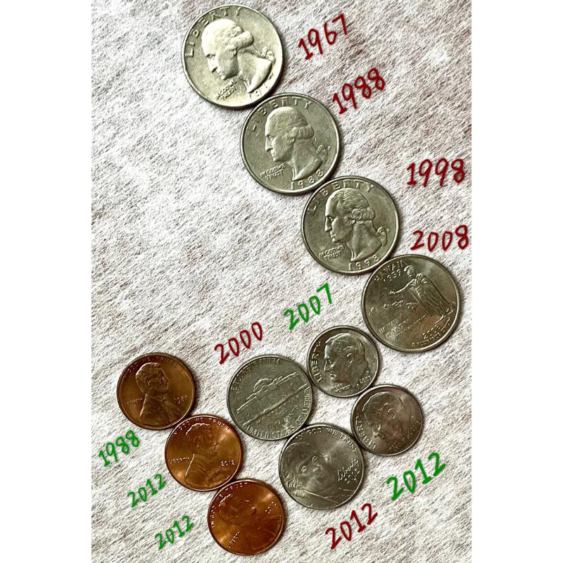 不含運費低於$99實在難以出貨,麻煩請各賣場看一下湊到$99 美元硬幣林肯銅板銅幣硬幣美國1⃣️1988年一分2⃣️2012年1分3⃣️2000年五分4⃣️2012年5分5️⃣1965年1分6️⃣1980年1分