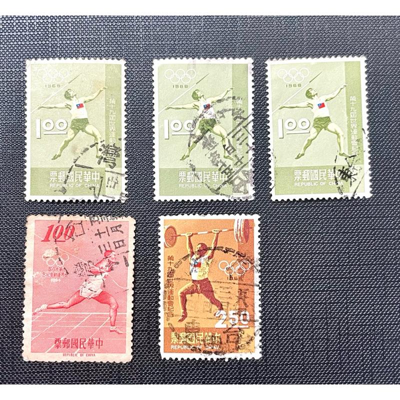 民國57年10月12日紀122第19屆世界運動會紀念郵票 舊票 銷票 台東戳票合售6張 58年郵戳日期寫法和現在大不同