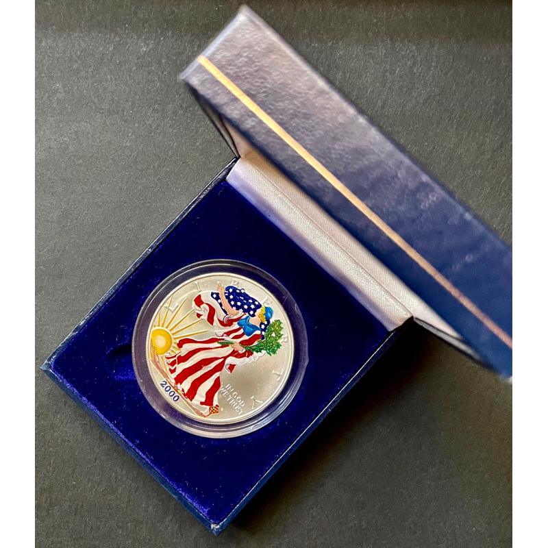 1⃣️二手D&G包掛2⃣️2000年千禧年美元鷹洋銀幣純銀一盎司9999純銀加彩自由女神帶原壓克力盒原珠寶盒