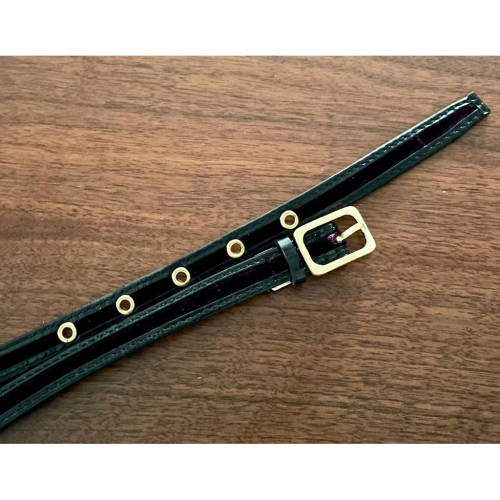 保真正品✨全新未使用✨ Cole Haan深酒紅色✨漆皮毛皮混編✨細皮帶 1.5cm窄版✨一條能為穿搭畫龍點睛的精品皮帶