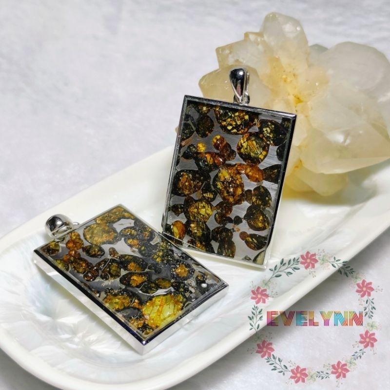 橄欖隕石吊墜 方型橄欖天鐵隕石 橄欖隕鐵無事牌 橄欖鐵隕石 橄欖石隕石 鎳鐵隕石 石鐵隕石 避邪擋煞 轉運開運 招財鎮宅