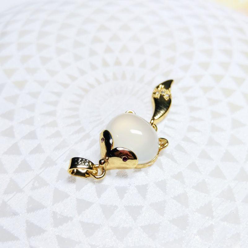 玉髓狐狸吊墜 玉髓吊飾 s925鍍金 尾巴靈活擺盪