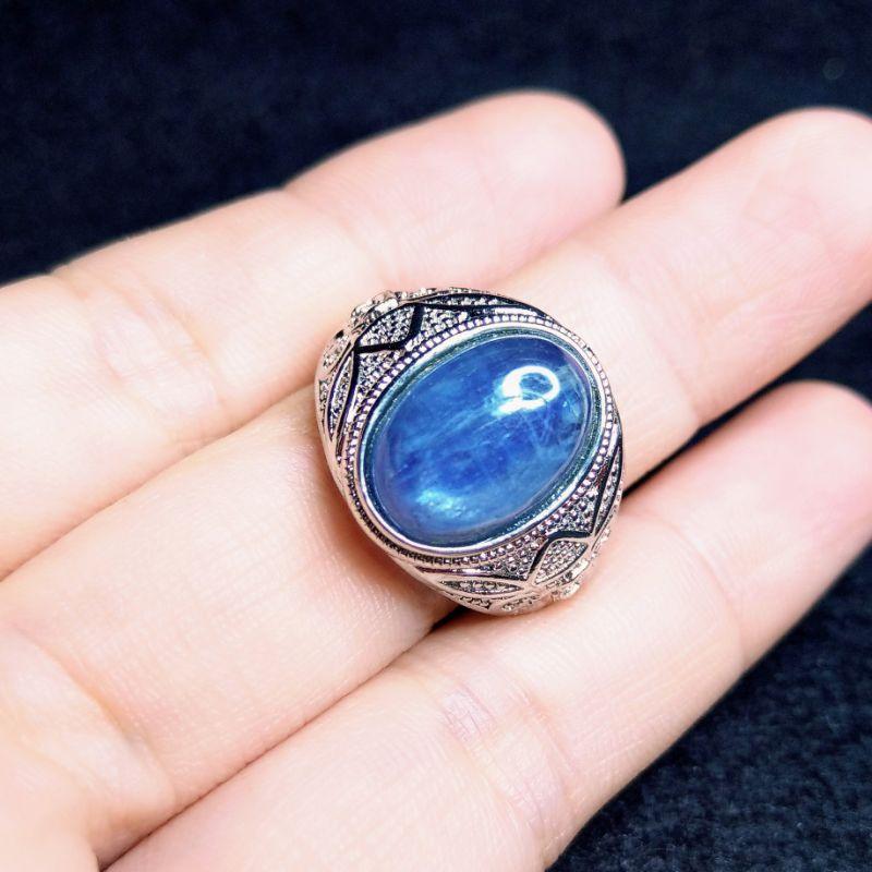 藍晶石戒指 藍晶石男戒 透光 貓眼效應 天然無優化無染色 s925銀活尾