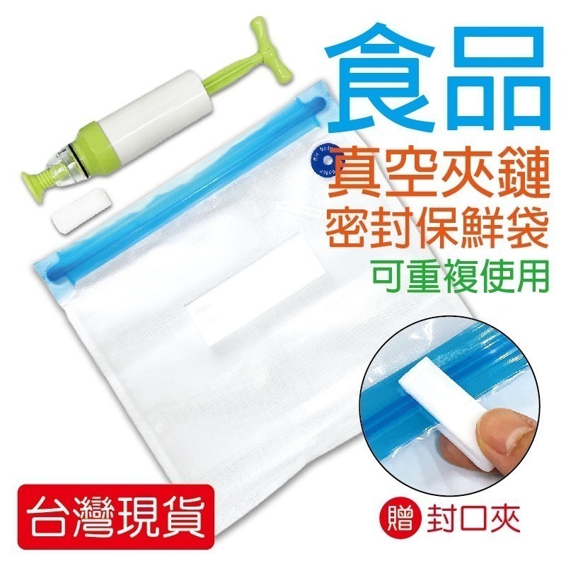 3.使用抽氣筒/電動抽氣機,直接對準藍色氣閥口抽氣即可(切忌藍色閥門貼紙不能拔除),抽完空氣時,記得壓一壓氣閥口,避免沒有異物,得以完整保存食品。