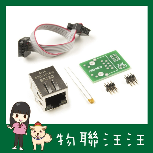 The Ethernet Kit for Teensy 4.1 from PJRC includes an Ethernet MagJack connector, a bare circuit board, one ribbon cable, two headers, and a capacitor. As this is a kit that require assembly, some beginner-level soldering is required.