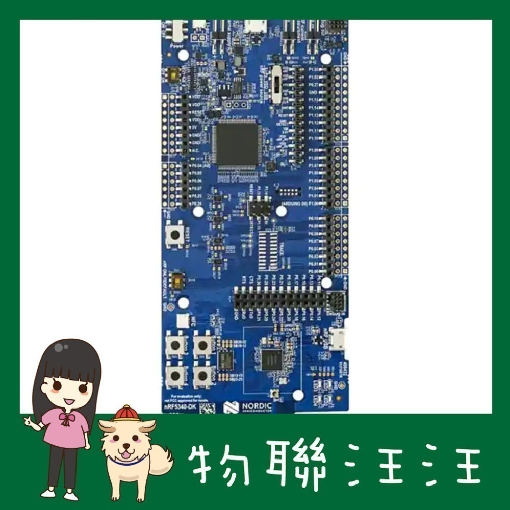 The nRF5340 DK is the development kit for the nRF5340 System-on-Chip (SoC) [ https://www.nordicsemi.com/Products/Low-power-short-range-wireless/nRF5340 ] , containing everything needed to get started with development, on a single board.