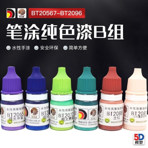 酋長大陸 SM模型漆筆塗裝BT純色上色颜料環保水性漆 B (BT2058~2100) (5ml)
