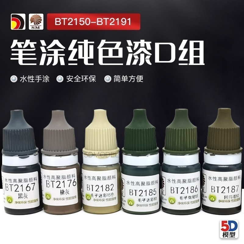 酋長大陸 SM模型漆筆塗裝BT純色上色颜料環保水性漆 D (BT2157~2199)(5ml)