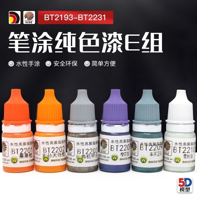 酋長大陸 SM模型漆筆塗裝BT純色上色颜料環保水性漆 E (BT2201~2256)(5ml)