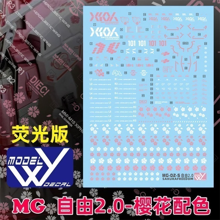 【Max模型小站】藍宇 MG ZGMF-X10A 自由鋼彈2.0(櫻花).專用水貼【螢光+夜光】