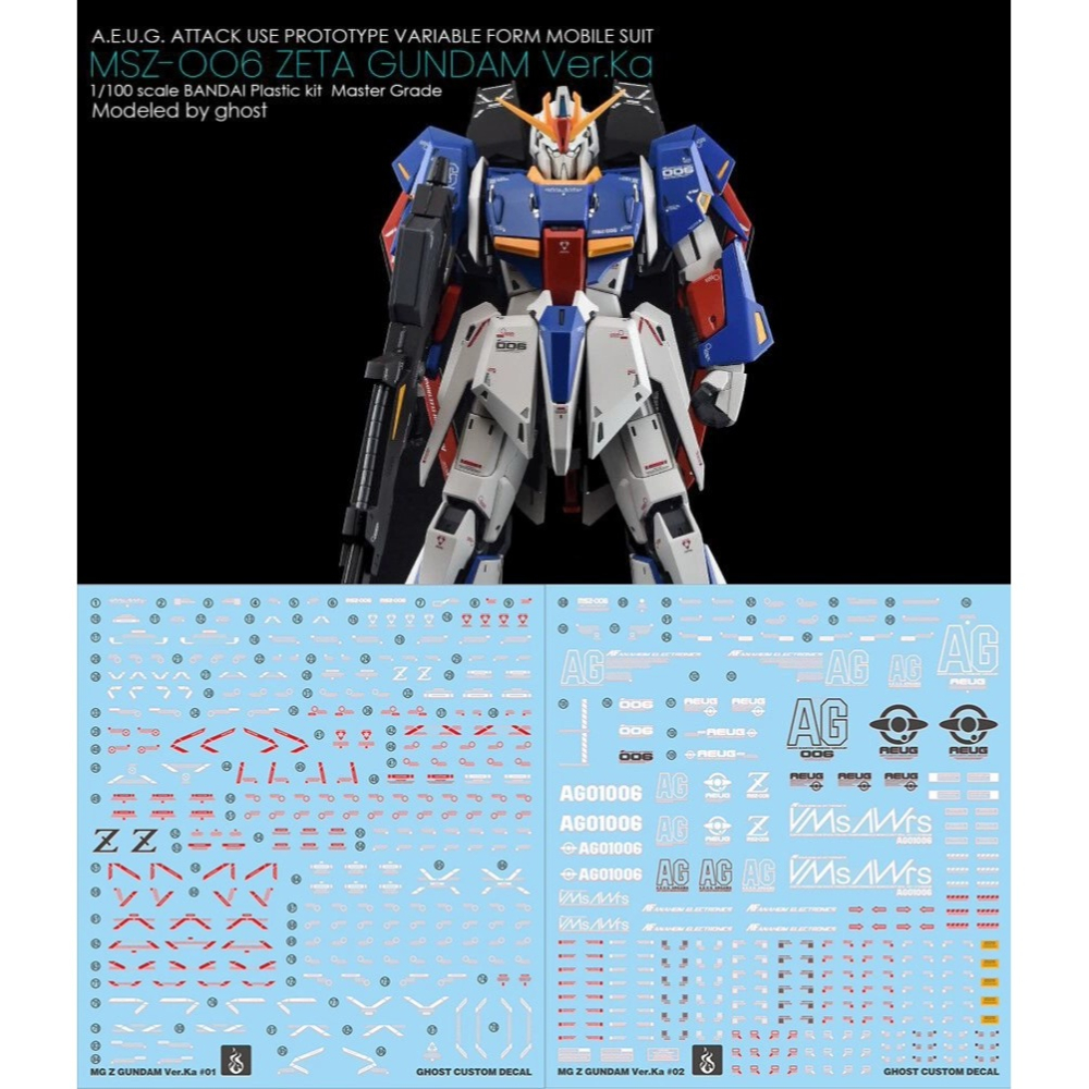 【Max模型小站】炎水貼 GHOST原創 MG(05) Z鋼彈 卡版 ZETA Ver.Ka 20周年 螢光水貼