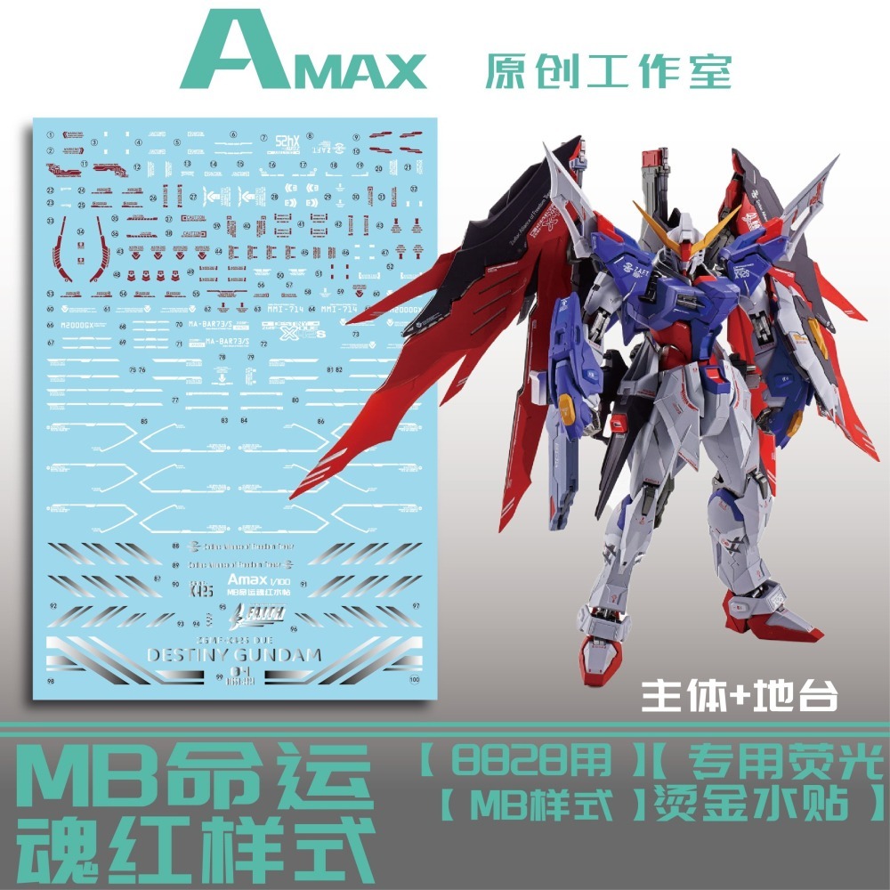 【Max模型小站】AMAX工作室 MG MB 1/100 命運鋼彈 魂紅樣式 帶地台 燙金螢光 水貼