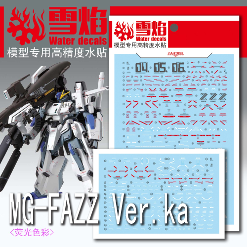 【Max模型小站】雪焰 MG 52 FAZZ Ver.ka 全裝甲鋼彈 卡版 KA 螢光水貼(2張)
