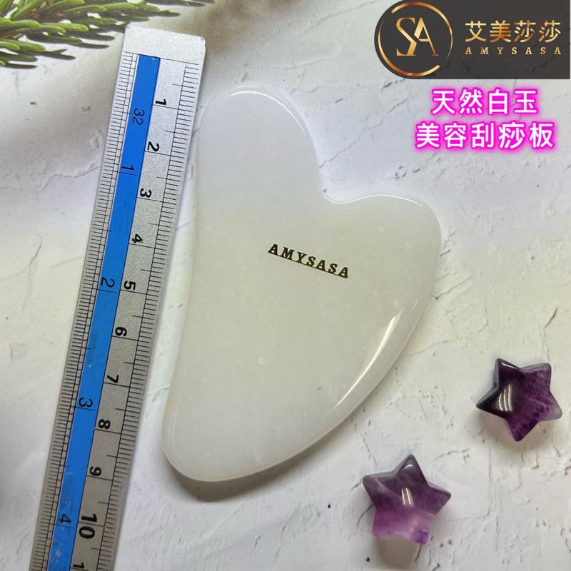艾美莎莎(送A醇精華液)天然玉石刮痧板 白玉心形刮痧按摩器 心形刮痧板 面部美容按摩 刮痧棒 撥筋棒 面部刮痧按摩器