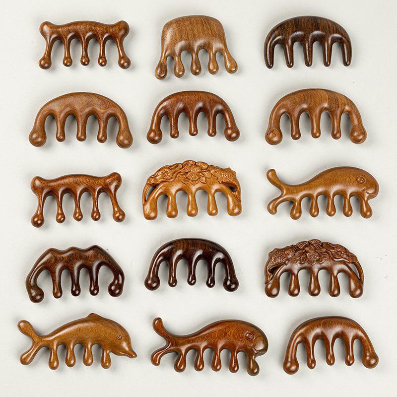 艾美莎莎💞台灣現貨 綠檀 寬齒按摩梳 胖胖手木梳 寬齒綠檀木梳 木梳經絡梳 頭部按摩 指壓按摩 綠檀木按摩梳 綠檀大齒梳