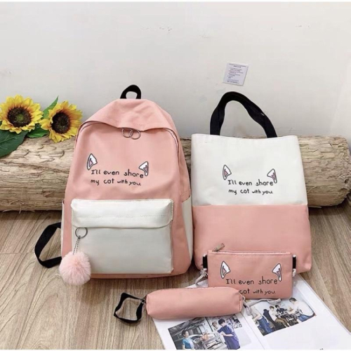 現貨 出清 4件套 書包❤️韓版學生潮女大容量帆布小學生書包小清新可愛雙肩包