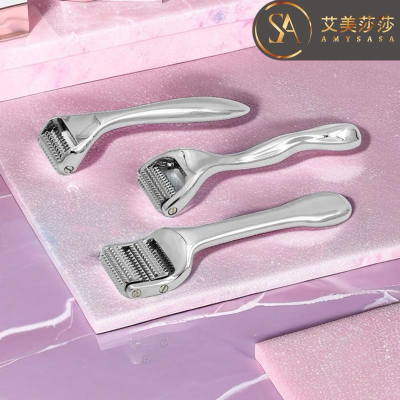艾美莎莎💞現貨 靜音款 微針滾輪導入儀 按摩滾輪 刮痧板 臉部刮痧板 臉部滾輪 按摩器 刮痧板 頭皮滾針按摩棒 金屬
