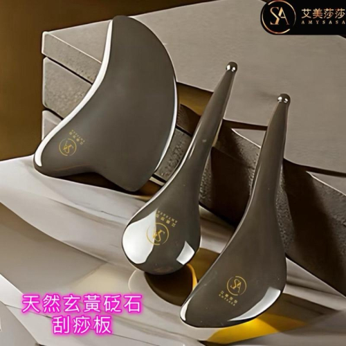 艾美莎莎💞現貨 三件套 玄黃泗濱 砭石刮痧板 熱石SPA 刮痧板 臉部刮痧按摩 砭石撥筋棒 經絡淋巴疏通 玄黃刮痧板