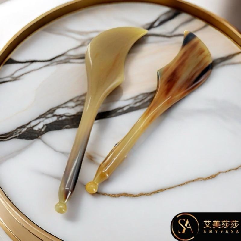 艾美莎莎💞現貨 天然牛角刮痧器 牛角刮痧板 牛角撥筋刀 臉部刮痧板 面部刮痧板 刮痧棒 撥筋棒 刮臉