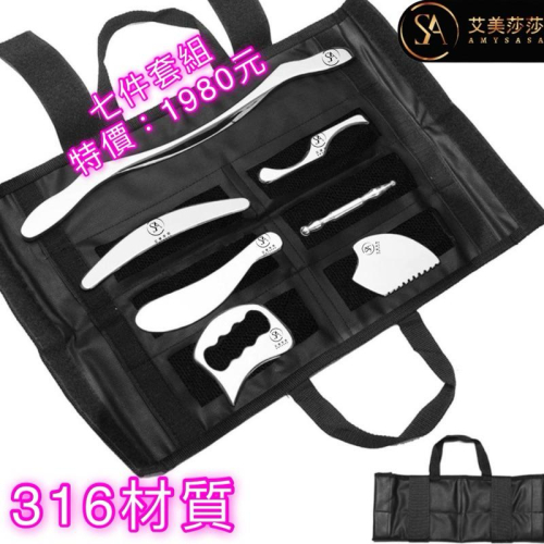 艾美莎莎💞現貨免運超值316 七件組 不鏽鋼筋膜刀 不鏽鋼刮痧刀 刮痧板 筋膜刀 按摩刀 肌肉放鬆 健身理療 腿部按摩