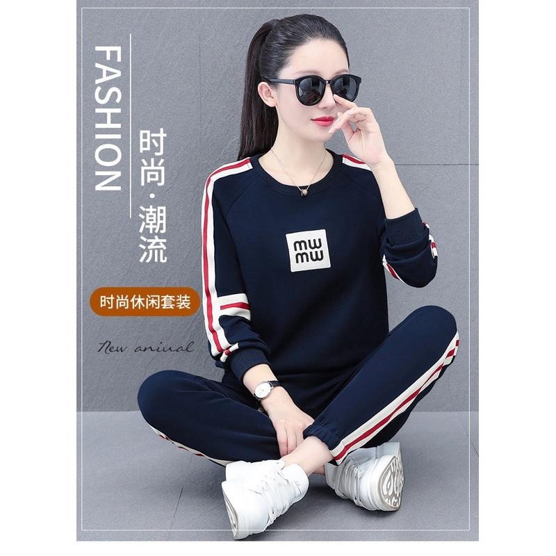 現貨 2XL 秋冬 新款 韓版運動休閒套裝女服飾 兩件套 休閒服(上衣加褲子) 休閒運動服女 休閒服套裝 長袖運動套裝