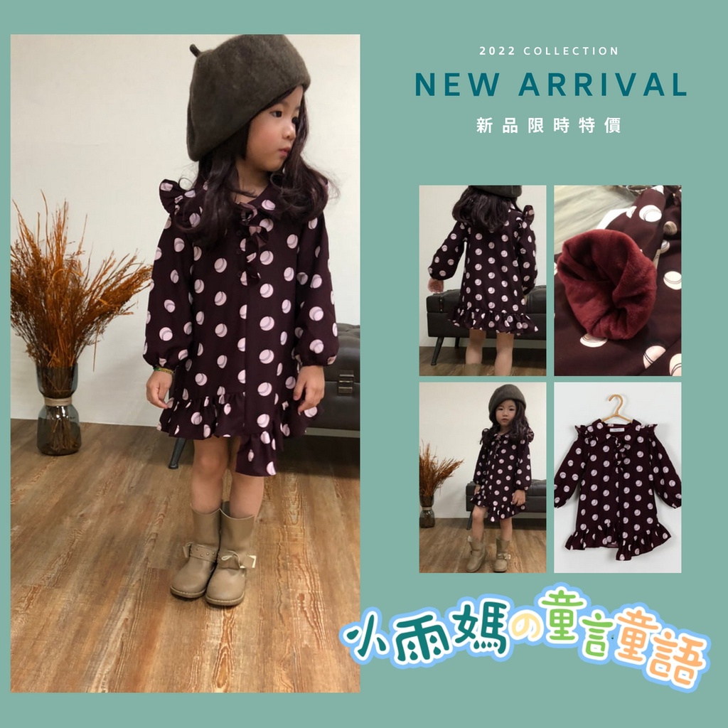 【台灣賣家24H出貨】現貨女童長袖洋裝 內裡短絨毛長袖連身裙 中小同連身裙 韓版女童洋裝 小飛袖長袖連身裙