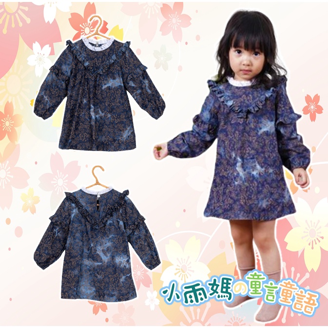 【台灣賣家24H出貨】現貨女童長袖洋裝 長袖連身裙 牛仔印花長袖洋裝 牛仔印染長袖連身裙 中小童長袖洋裝