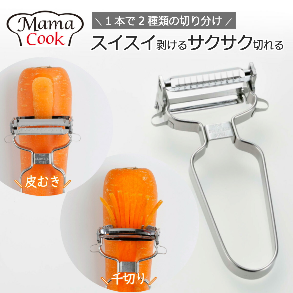 ママクック スゴ切れ 両面 ピーラー 日本製 ステンレス製 切れ味抜群 時短調理 皮むき 千切り サラダ 野菜 キン