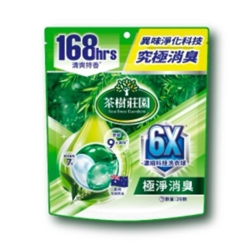 品名 : 茶樹莊園6X濃縮科技洗衣球類型洗衣球功能抗菌防蟎, 極淨消臭 容量 : 312g(12gX26顆) 產地 : 中國 商品規格: 適用於:一般衣料 產地:亞洲