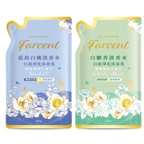 【Max魔力生活家】 Farcent 香水白泥淨化沐浴乳 白麝香 藍鈴白桃 沐浴露補充包 650g 低價供應