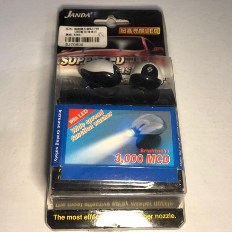 #JANDA #雨刷噴水頭 #珍珠白 #LED藍光 #通用型 #台灣製 一個 : 230元 ( #賠售價出清 ) #買到賺到 商品如圖 實品拍攝 欲購從速 1. 超亮LED 增強警示功能 2. 噴霧式噴嘴 增加噴水面積 3. 減少雨刷片磨損
