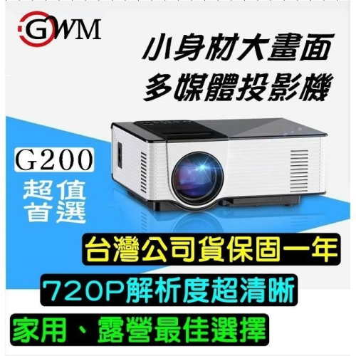 【家用 露營 的好選擇】【商品都是現貨喔】 注意事項: 【簡報/教學會議/不適用喔 請忽下標】 【簡報/教學會議/不適用喔 請忽下標】 .連接電視,請另外選購AV端子/HDMI線 .連接電腦,請另外選購HDMI線/VGA螢幕線 .連接手機,請另外選購無線傳輸器/同屏器 安桌/蘋果都通用 【包裝內容物 】 .投影機 *1 .電源線 *1 .遙控器 *1 .中文繁體說明書*1 .中文繁體保固卡*1 .AV音源線*1 .鏡頭蓋*1 【產品規格】 .品牌:GWM .型號:G200 .投影方式:正投 .變焦方式:定焦 .聚焦方式:手動聚焦 .規格:205*148*90mm .電壓:110-240(V) .重量:1.0(kg) .功率:55(w) .分辨率:1280*720 .分辨率相容:1920*1080P .亮度:2500流明 .對比度:3000:1 .投影距離:1-5m .投影尺寸:30-150吋 .投影比例:4:3 16:9 .語言:繁體中文 、英文等23國語言 經濟部標準檢驗局 BSMI字號: R74698 #GWM #g200#家庭劇院#g350#G200投影機#hdmi無線電視#2000流明 #投影機#投影機布幕#hdmi線 #apple蘋果 #手機投影機 #露營#hdmi線 #投影機露營#蘋果手機 #家電影音#手機投影機