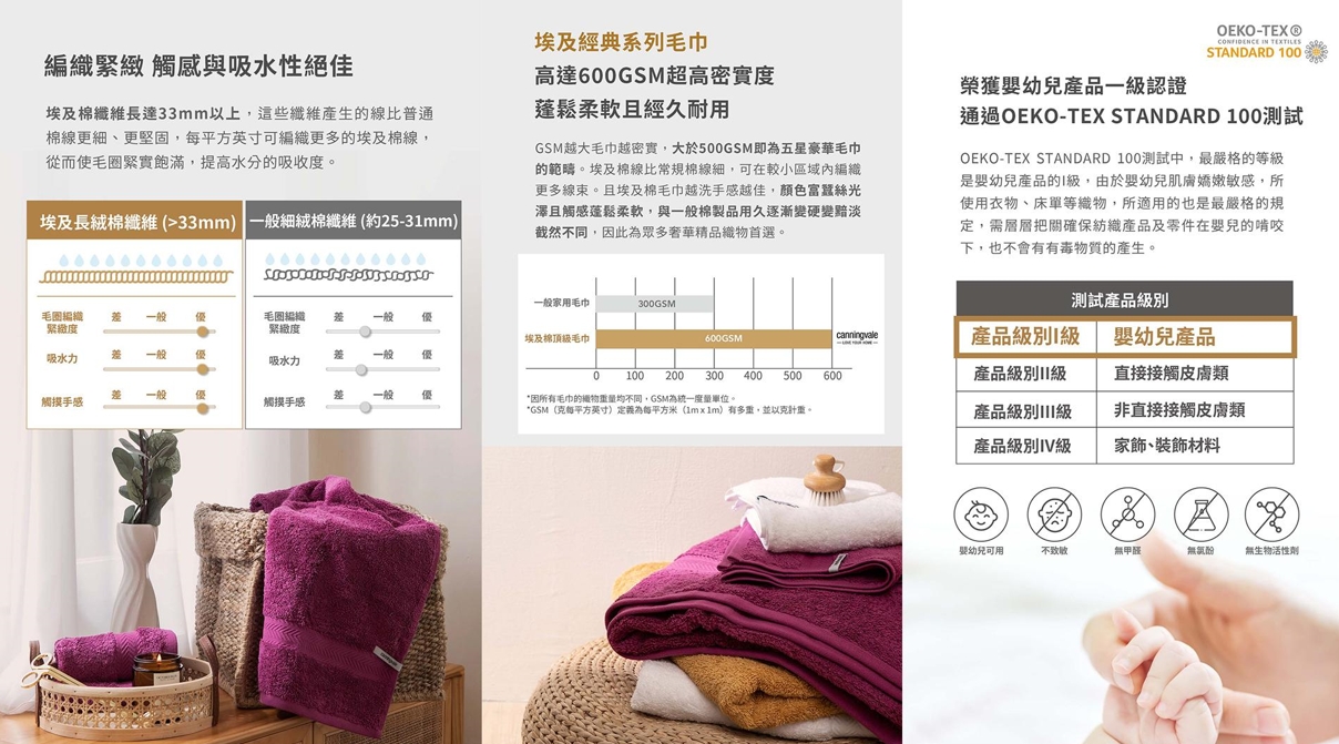 〖4件組〗內容: 浴巾(75x145cm)*2入、毛巾(35x75cm)*1、方巾(30x30cm)*1