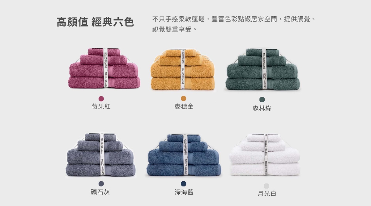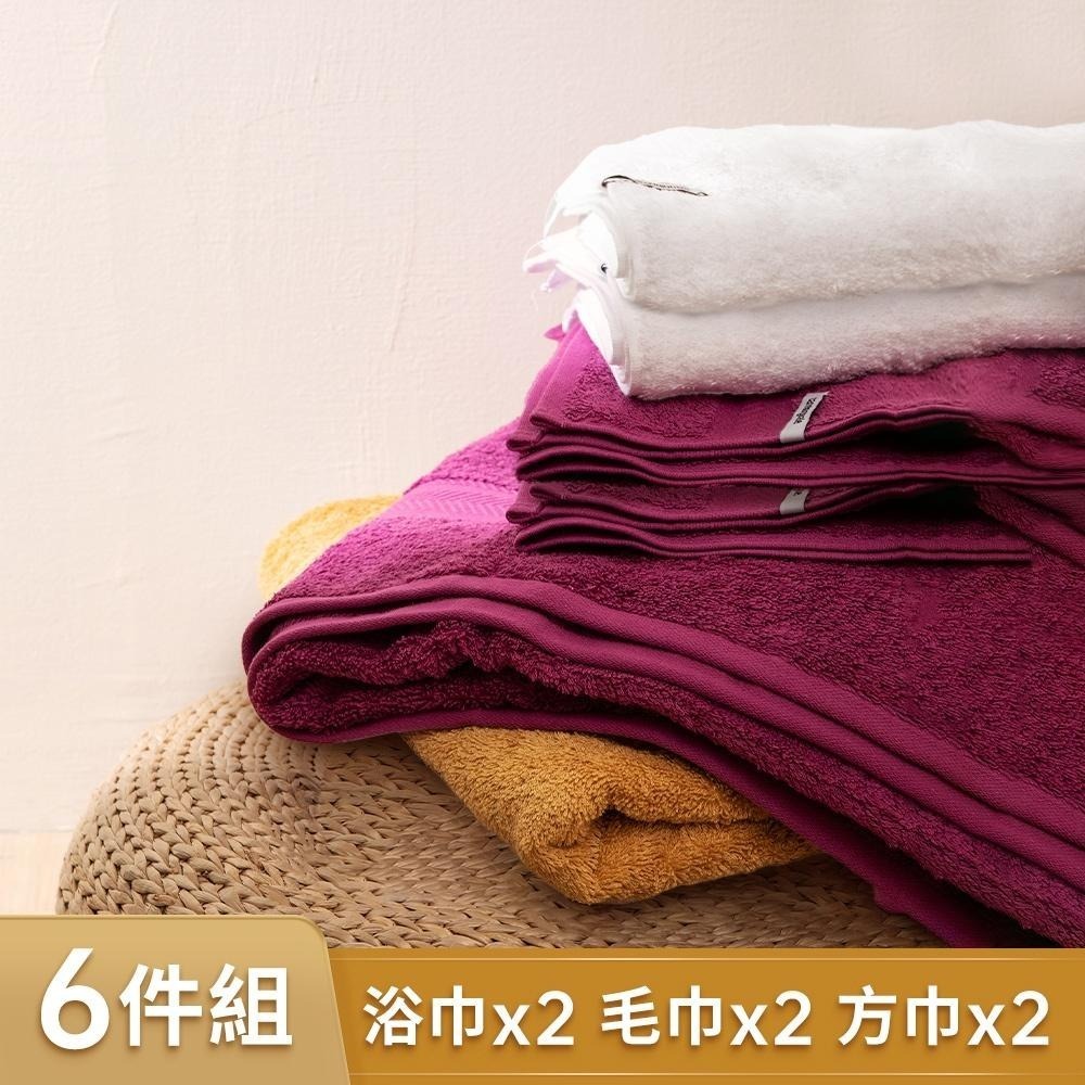 〖6件組〗內容: 浴巾(75x145cm)*2入、毛巾(35x75cm)*2、方巾(30x30cm)*2
