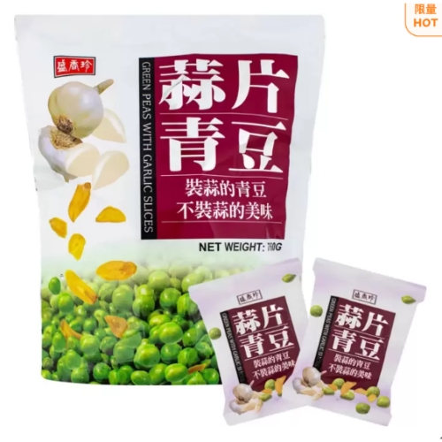 成分青碗豆、蒜片、植物油(棕櫚油)、蒜粉、蒜頭、食鹽、品質改良劑(焦磷酸鈉、多磷酸鈉)、食用黃色四號、食用藍色一號。素食標示 (全素、蛋奶素)植物五辛素